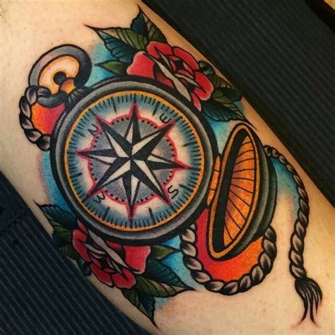 Old School Compass Tattoo - Navigate your way through ink inspiration with the top 40 best traditional compass tattoo designs for men. Explore cool old school sailor styles and ideas. Get inspired by classic old school compass tattoo designs and find the perfect symbol to guide you on your journey. The compass is rendered with consummate skill and enhanced by the perfect contrast between gold.